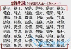 组词大全详解[缝组词]如:缝刺、缝工、堵缝、缝补、缝隙、缝纫、缝合、缝衣、缝腋、缝穷、缝际、缝人、押缝、针缝、直缝、中缝、无缝、狭缝、罅缝、补缝、裁缝、拔缝...