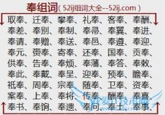 组词大全详解[奉组词]如:取奉、迁奉、攀奉、礼奉、客奉、奉酬、奉差、奉别、奉制、奉帚、奉翼、奉进、奉请、奉赠、奉送、奉邑、奉遵、奉迎、奉元、赍奉、寄奉、还奉...