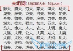组词大全详解[夫组词]如:黥夫、膳夫、穷夫、蒙夫、耄夫、马夫、泷夫、廉夫、克夫、洛夫、拉夫、矿夫、夸夫、鲁夫、猎夫、戾夫、力夫、情夫、潜夫、樵夫、强夫、怯夫...