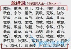 组词大全详解[敢组词]如:敢保、敢决、敢于、敢任、怕敢、豪敢、敢直、多敢、胆敢、到敢、无敢、骁敢、雄敢、不敢、敢自、敢死、莫敢、讵敢、竟敢、横敢、果敢、岂敢...