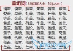 组词大全详解[盖组词]如:铺盖、谟盖、脑盖、笼盖、弭盖、陵盖、梨盖、墓盖、虬盖、钳盖、丘盖、擎盖、钤盖、金盖、旌盖、节盖、鞯盖、孔盖、黄盖、褐盖、荷盖、华盖...