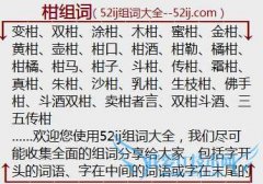 组词大全详解[柑组词]如:变柑、双柑、涂柑、木柑、蜜柑、金柑、黄柑、壶柑、柑口、柑酒、柑勒、橘柑、柑橘、柑马、柑子、斗柑、传柑、霜柑、真柑、朱柑、沙柑、乳柑...