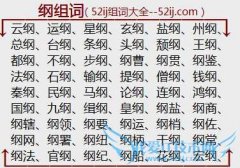 组词大全详解[纲组词]如:云纲、运纲、星纲、玄纲、盐纲、州纲、总纲、台纲、条纲、头纲、颓纲、王纲、都纲、不纲、步纲、纲曹、纲贯、纲鉴、法纲、石纲、输纲、提纲...