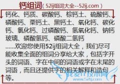 组词大全详解[钙组词]如:钙化、钙质、碳酸钙、棕钙土、硫酸钙、磷酸钙、栗钙土、黑钙土、氧化钙、碳化钙、氯化钙、过磷酸钙、氢氧化钙、钠钙玻璃、磷酸氢钙、磷酸二...