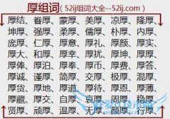 组词大全详解[厚组词]如:厚结、眷厚、蒙厚、美厚、凉厚、隆厚、坤厚、强厚、柔厚、儒厚、朴厚、内厚、庞厚、仁厚、厚意、厚礼、厚颜、厚实、厚大、和厚、厚幸、厚扰...