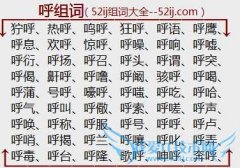 组词大全详解[呼组词]如:狞呼、热呼、鸣呼、狂呼、呼语、呼鹰、呼息、欢呼、惊呼、呼噪、呼响、呼嘘、呼衍、呼扬、呼召、呼头、呼谓、呼突、呼偈、鼾呼、呼噜、呼阚...