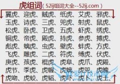 组词大全详解[虎组词]如:翼虎、迎虎、贼虎、纸虎、艾虎、邪虎、玉虎、诗虎、三虎、兕虎、射虎、鼠虎、松虎、卧虎、卫虎、五虎、虾虎、绣虎、铜虎、帝虎、殿虎、持虎...