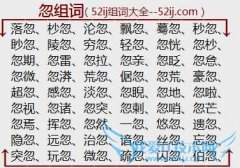 组词大全详解[忽组词]如:落忽、杪忽、沦忽、飘忽、蓦忽、秒忽、眇忽、陵忽、穷忽、轻忽、忽恍、忽杪、忽期、忽雷、忽拉、忽亲、忽眨、忽怠、忽微、忽漭、荒忽、倨忽...