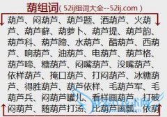 组词大全详解[葫组词]如:葫芦、闷葫芦、葫芦题、酒葫芦、火葫芦、葫芦藓、葫萝卜、葫芦提、葫芦韵、葫芦科、葫芦蹄、水葫芦、醋葫芦、西葫芦、响葫芦、油葫芦、电葫...