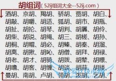 组词大全详解[胡组词]如:酒胡、京胡、羯胡、骄胡、贾胡、胡白、胡敲、胡嚼、胡适、狐胡、胡市、胡瓶、胡扯、胡抡、胡琴、胡判、胡羼、胡伶、胡柴、胡说、胡绳、胡三...