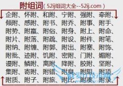 组词大全详解[附组词]如:企附、怀附、和附、宁附、强附、牵附、倾附、感附、附书、附乔、附事、附手、附势、附蠃、附俗、附身、附上、附命、附片、附落、附疏、附设...