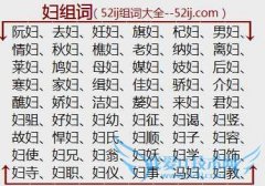 组词大全详解[妇组词]如:阮妇、去妇、妊妇、旗妇、杞妇、男妇、情妇、秋妇、樵妇、老妇、纳妇、离妇、莱妇、鸠妇、母妇、媒妇、妓妇、后妇、寒妇、家妇、缉妇、佳妇...