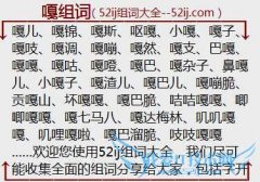组词大全详解[嘎组词]如:嘎儿、嘎锦、嘎斯、呕嘎、小嘎、嘎子、嘎吱、嘎调、嘎嘣、嘎然、嘎支、巴嘎、嘎嘎、嘎咕、嘎噔、嘎巴、嘎杂子、鼻嘎儿、小嘎子、嘎渣儿、嘎...