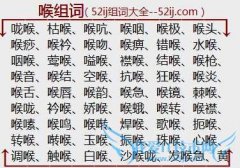 组词大全详解[喉组词]如:咙喉、枯喉、喉吭、喉咽、喉极、喉头、喉痧、喉衿、喉吻、喉痹、错喉、水喉、咽喉、莺喉、嗌喉、襟喉、结喉、喉枪、喉音、喉结、空喉、抗喉...