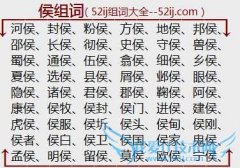 组词大全详解[侯组词]如:河侯、封侯、粉侯、方侯、地侯、邦侯、邵侯、长侯、彻侯、史侯、守侯、兽侯、蜀侯、通侯、伍侯、翕侯、细侯、乡侯、夏侯、选侯、县侯、屑侯...