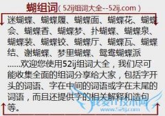 组词大全详解[蝴组词]如:迷蝴蝶、蝴蝶履、蝴蝶面、蝴蝶花、蝴蝶会、蝴蝶香、蝴蝶梦、扑蝴蝶、蝴蝶泉、蝴蝶装、蝴蝶铰、蝴蝶厅、蝴蝶瓦、蝴蝶结、谢蝴蝶、梦里蝴蝶、...