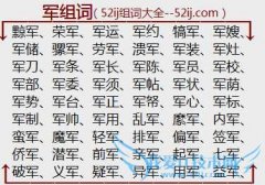 组词大全详解[军组词]如:黥军、荣军、军运、军约、犒军、军嫂、军储、骡军、劳军、溃军、军装、军灶、军刀、军条、军长、军陈、军员、军校、军部、军委、军须、军帖...