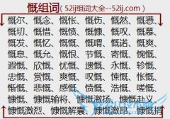 组词大全详解[慨组词]如:慨尔、慨念、慨怅、慨伤、慨然、慨懑、慨切、慨惜、慨愤、慨慷、慨叹、慨慕、慨发、慨忆、慨慨、慨喟、慨诺、慨爽、慨息、慨允、慨恨、节慨...