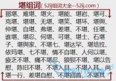 组词大全详解[堪组词]如:那堪、难堪、堪火、堪能、堪岩、堪可、克堪、堪堪、无堪、堪笑、堪坏、堪舆、仲堪、自堪、弗堪、差堪、不堪、任堪、谁堪、堪忍、何堪、可堪...