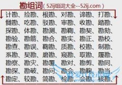 组词大全详解[勘组词]如:计勘、捡勘、根勘、对勘、谛勘、打勘、雠勘、吃勘、驳勘、审勘、收勘、踏勘、探勘、体勘、勘测、勘鞫、勘契、勘劾、勘验、勘箭、勘合、勘实...
