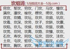 组词大全详解[坎组词]如:窍坎、堑坎、穷坎、门坎、马坎、懔坎、满坎、凛坎、棱坎、楞坎、塄坎、坎音、坎宫、坎精、坎坛、坎井、坎肩、坑坎、坎毒、坎深、坎劳、坎子...