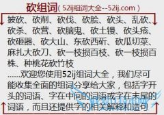 组词大全详解[砍组词]如:披砍、砍削、砍伐、砍脍、砍头、乱砍、砍杀、砍营、砍脑鬼、砍土镘、砍头疮、砍砸器、砍大山、东砍西斫、砍瓜切菜、麻扎大砍刀、砍一枝损百...