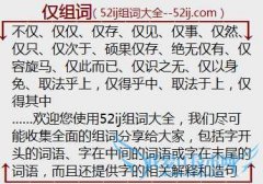 组词大全详解[仅组词]如:不仅、仅仅、仅存、仅见、仅事、仅然、仅只、仅次于、硕果仅存、绝无仅有、仅容旋马、仅此而已、仅识之无、仅以身免、取法乎上,仅得乎中、...