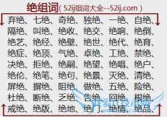 组词大全详解[绝组词]如:弃绝、七绝、奇绝、独绝、一绝、自绝、隔绝、叫绝、绝收、绝交、绝响、绝倒、绝艺、绝经、绝壁、绝世、绝代、绝育、绝症、绝顶、气绝、卓绝...