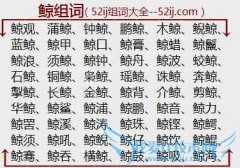 组词大全详解[鲸组词]如:鲸观、蒲鲸、钟鲸、鹏鲸、木鲸、鲵鲸、蓝鲸、鲸甲、鲸口、鲸膏、鲸蜡、鲸鬣、鲸浪、须鲸、鲸钟、鲸舟、鲸波、蛟鲸、石鲸、铜鲸、枭鲸、瑶鲸...