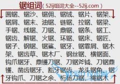 组词大全详解[锯组词]如:圆锯、锯沙、锯佣、锯绒、锯片、锯架、锯屑、锯末、油锯、链锯、拉锯、锯梁、手锯、线锯、刀锯、鼎锯、锯条、锯工、锯齿、解锯、火锯、环锯...