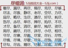 组词大全详解[尽组词]如:罄尽、漏尽、两尽、倾尽、克尽、尽够、尽法、尽敌、静尽、老尽、空尽、力尽、屈尽、略尽、汔尽、遒尽、好尽、耗尽、饬尽、赤尽、单尽、殚尽...