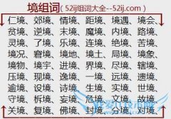 组词大全详解[境组词]如:仁境、郊境、情境、距境、境遇、境会、贫境、逆境、末境、魔境、内境、路境、灵境、了境、乐境、连境、绝境、苦境、境况、窘境、境地、境土...