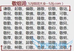 组词大全详解[敬组词]如:谦敬、起敬、偏敬、器敬、钦敬、敬诎、敬祝、敬顺、敬慎、敬逊、敬重、可敬、克敬、恪敬、敬辞、隆敬、敬尊、敬养、敬勤、敬中、敬畏、敬语...
