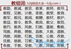 组词大全详解[教组词]如:教勖、教诫、教官、教案、教师、教导、教程、见教、计教、家教、教堂、教育、教军、教民、教阅、教鞭、教材、教护、教益、教令、教条、教具...