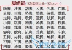 组词大全详解[脚组词]如:阵脚、注脚、韵脚、云脚、扎脚、作脚、支脚、主脚、坠脚、赘脚、滓脚、做脚、走脚、鞋脚、歇脚、运脚、贼脚、鸭脚、小脚、跳脚、踏脚、汤脚...