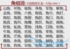 组词大全详解[角组词]如:山角、叩角、棱角、净角、军角、解角、金角、邻角、六角、角钱、角巾、角灯、角知、角鸱、角智、角韵、角口、角龙、角音、角列、角樽、角饮...