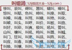 组词大全详解[叫组词]如:惨叫、哀叫、碍叫、嚣叫、啸叫、噪叫、惊叫、叫聒、色叫、啼叫、叫座、叫取、叫噪、叫魂、叫骂、叫啸、叫绝、叫化、叫破、叫头、叫呼、叫价...