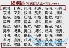 组词大全详解[揭组词]如:掀揭、轩揭、冤揭、扎揭、昭揭、标揭、表揭、变揭、按揭、赏揭、揭锅、揭挑、揭短、阁揭、负揭、打揭、揭孽、揭车、揭局、揭幕、揭席、揭宝...