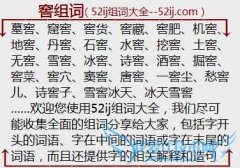 组词大全详解[窖组词]如:墓窖、窟窖、窖货、窖藏、窖肥、机窖、地窖、丹窖、石窖、水窖、挖窖、土窖、无窖、雪窖、冰窖、诗窖、酒窖、掘窖、窖菜、窖穴、窦窖、唐窖...