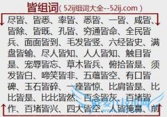 组词大全详解[皆组词]如:尽皆、皆悉、率皆、悉皆、一皆、咸皆、皆除、皆既、孔皆、穷通皆命、全民皆兵、面面皆到、毛发皆竖、六经皆史、满盘皆输、尽人皆知、人人皆...