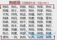 组词大全详解[拘组词]如:拘闷、拘礼、拘指、拘囚、拘束、拘女、拘缀、拘士、拘拘、拘补、拘挛、拘俗、不拘、绊拘、拘送、拘儒、拘作、拘世、拘肆、拘民、拘刷、拘縻...