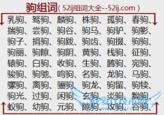 组词大全详解[驹组词]如:乳驹、驽驹、麟驹、株驹、孤驹、春驹、揣驹、尝驹、驹谷、驹马、驹驴、驹影、驹子、捐驹、驹跋、驹齿、驹掇、驹驹、驹丽、驹隙、驹阴、黄驹...