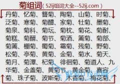 组词大全详解[菊组词]如:丹菊、忆菊、簪菊、陶菊、山菊、时菊、泛菊、寒菊、菊醴、家菊、牡菊、墨菊、菊泉、菊科、菊坛、菊枕、菊花、菊酎、菊糕、菊醑、菊节、菊酒...