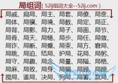 组词大全详解[局组词]如:局戚、扃局、局主、局套、局僚、局奁、局体、局骥、局境、局数、局定、局正、局背、局影、局力、局子、局面、局节、局脊、局天、局蜷、局步...
