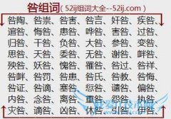 组词大全详解[咎组词]如:咎陶、咎祟、咎害、咎言、奸咎、疾咎、逭咎、悔咎、患咎、哗咎、害咎、过咎、归咎、干咎、负咎、大咎、参咎、变咎、思咎、天咎、委咎、无咎...