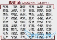 组词大全详解[聚组词]如:部聚、并聚、堡聚、保聚、毕聚、逼聚、繁聚、堆聚、斗聚、调聚、囤聚、甸聚、蹲聚、存聚、簇聚、萃聚、丛聚、蹙聚、崇聚、凑聚、收聚、生聚...