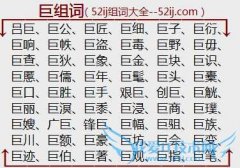 组词大全详解[巨组词]如:吕巨、巨公、巨匠、巨细、巨子、巨衍、巨响、巨帙、巨盗、巨毒、巨野、巨毋、巨查、巨狄、巨象、巨金、巨块、巨识、巨慝、巨儒、巨年、巨髦...
