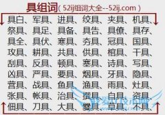 组词大全详解[具组词]如:具白、军具、进具、绞具、夹具、机具、祭具、具足、具备、具告、具僚、具存、具全、具伏、寒具、夯具、冠具、国具、攻具、耕具、共具、供具...