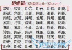 组词大全详解[距组词]如:跋距、拔距、距言、距石、距险、距脱、距战、角距、金距、间距、滑距、钩距、蹲距、抵距、撑距、差距、腾距、相距、奚距、行距、虚距、踊距...