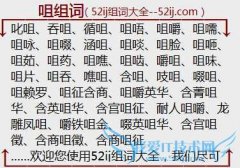 组词大全详解[咀组词]如:叱咀、吞咀、循咀、咀唔、咀嚼、咀嚅、咀咏、咀啜、涵咀、咀啖、咀脸、咀咂、咀茹、咀药、咀噍、咀啮、嚼咀、咀味、咀片、咀吞、噍咀、含咀...